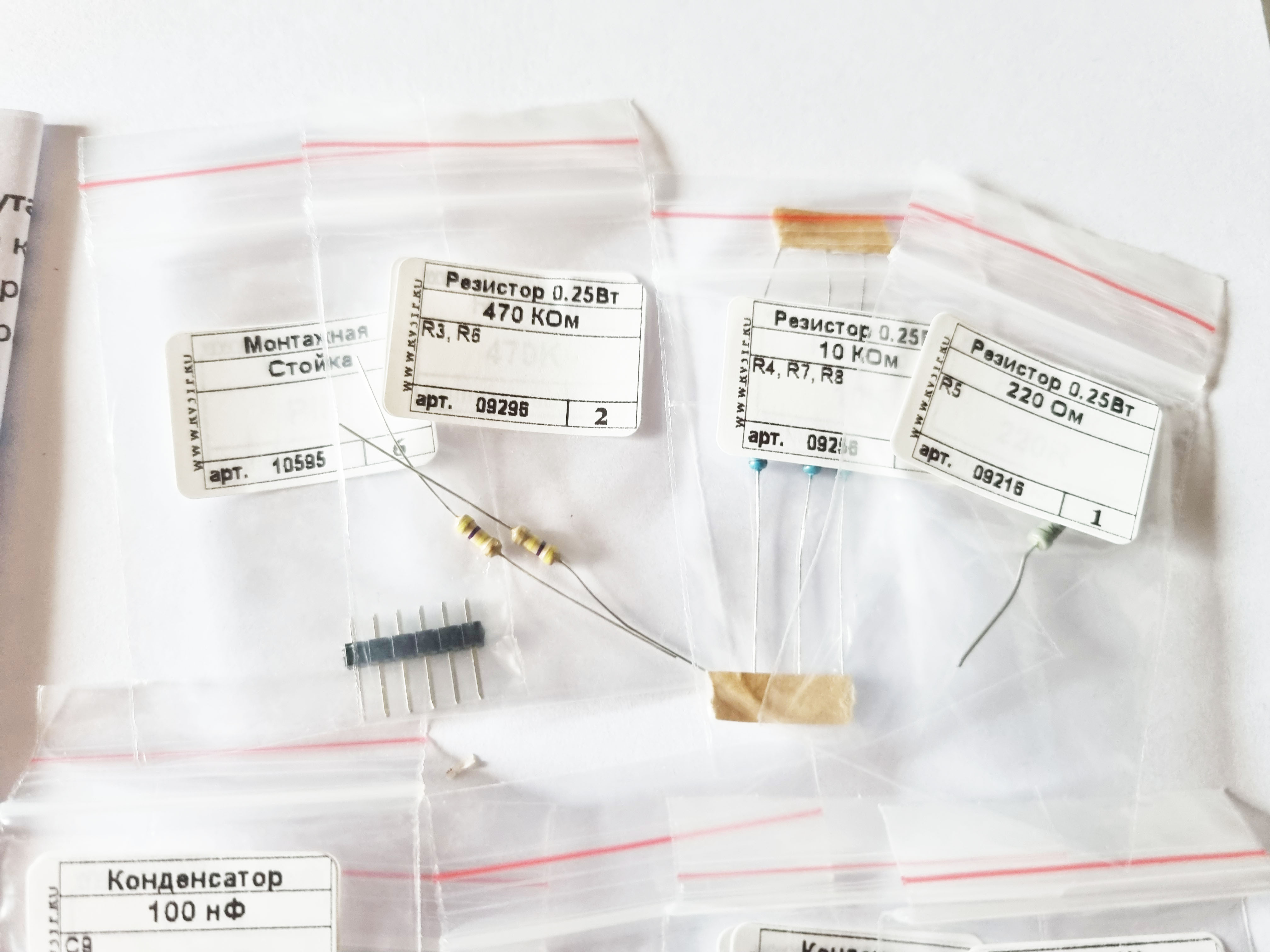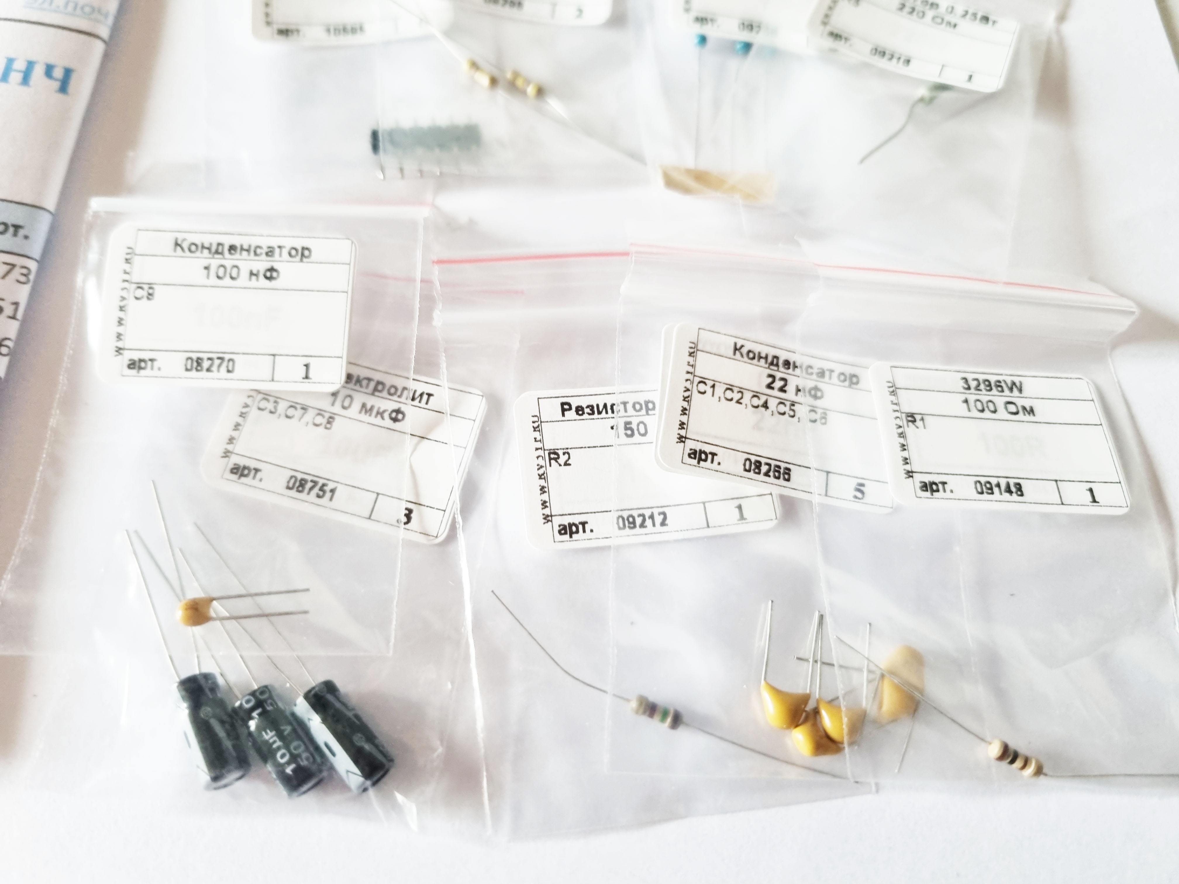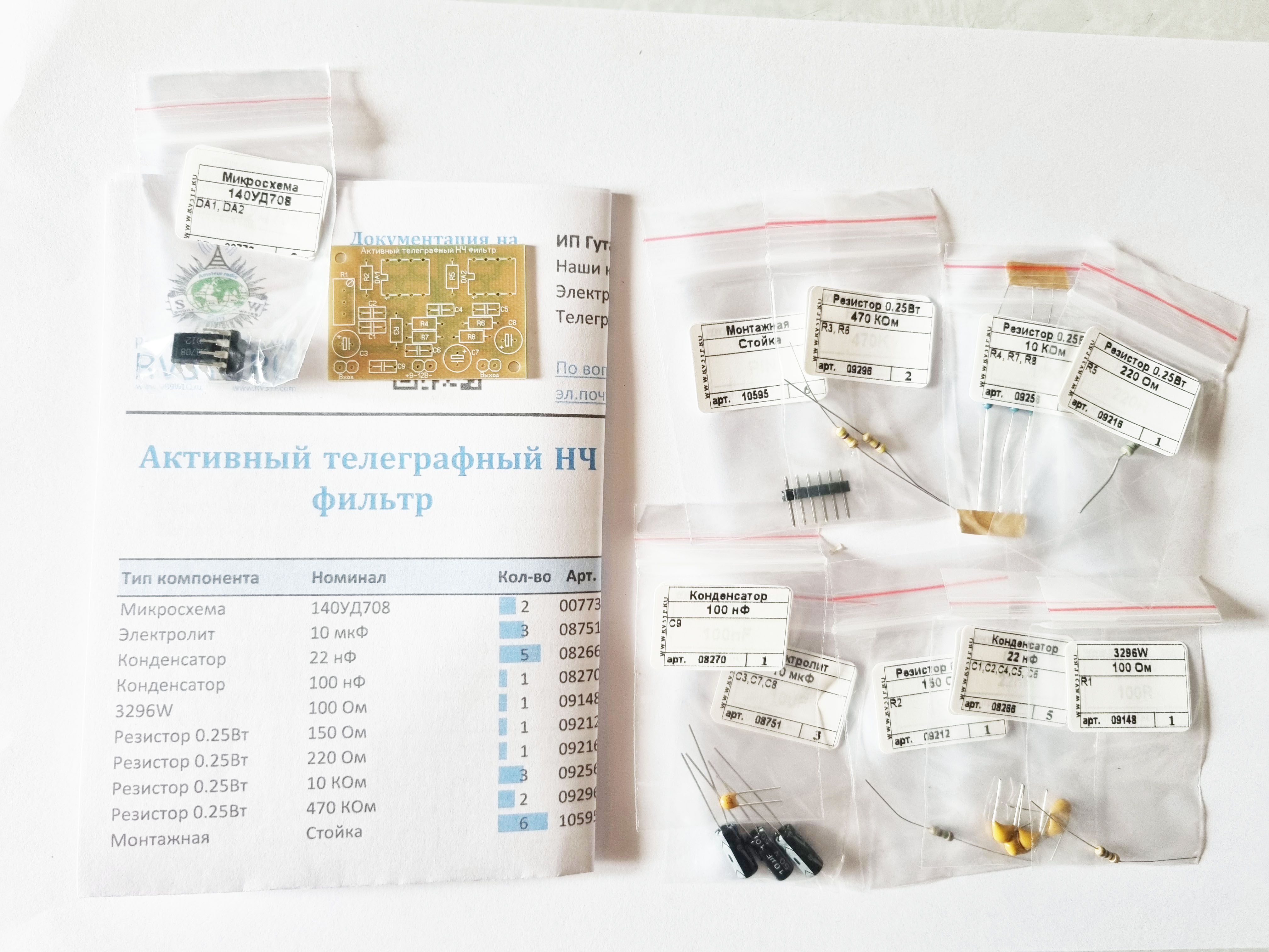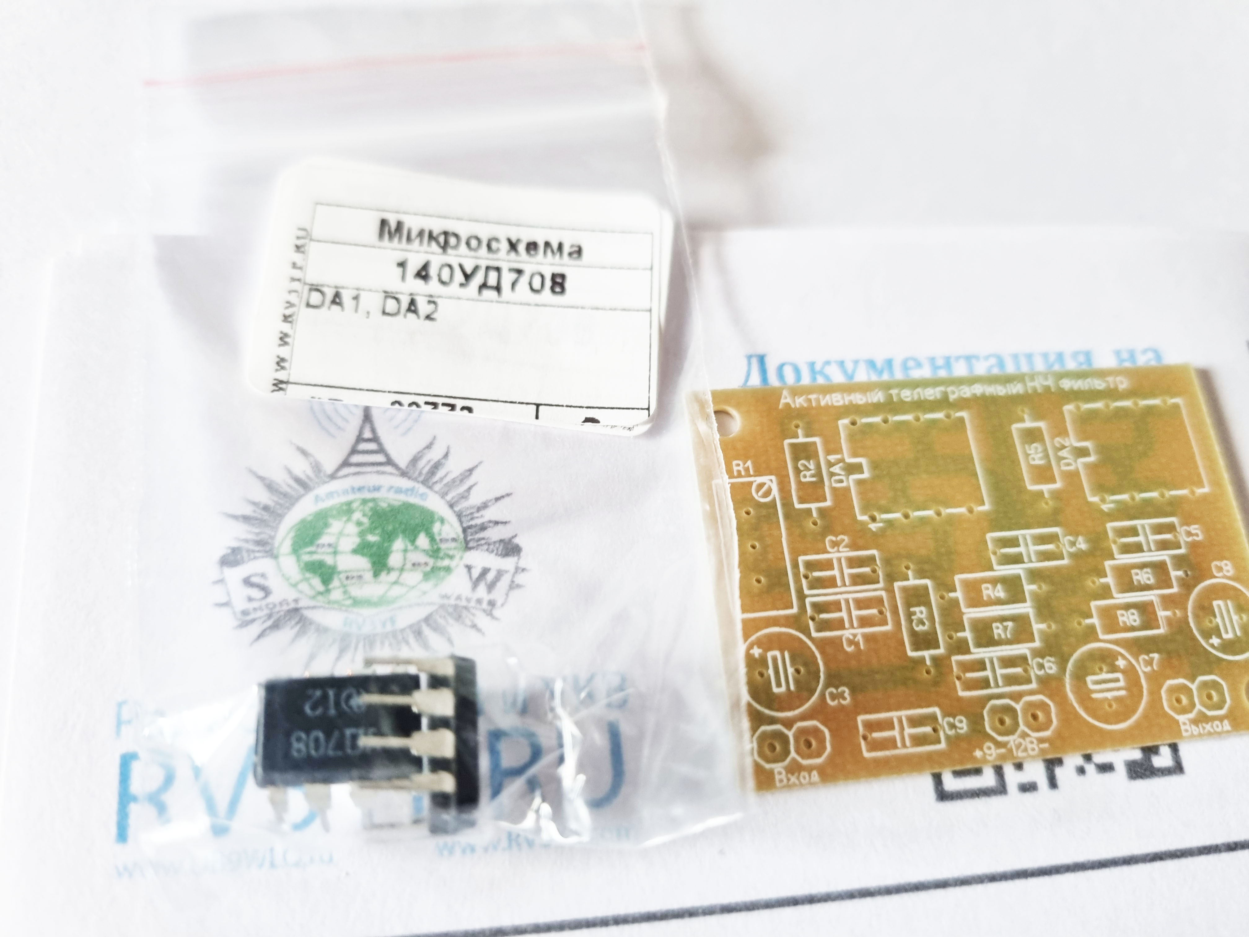 Состав набора: печатная плата, микросхемы, резисторы, конденсаторы