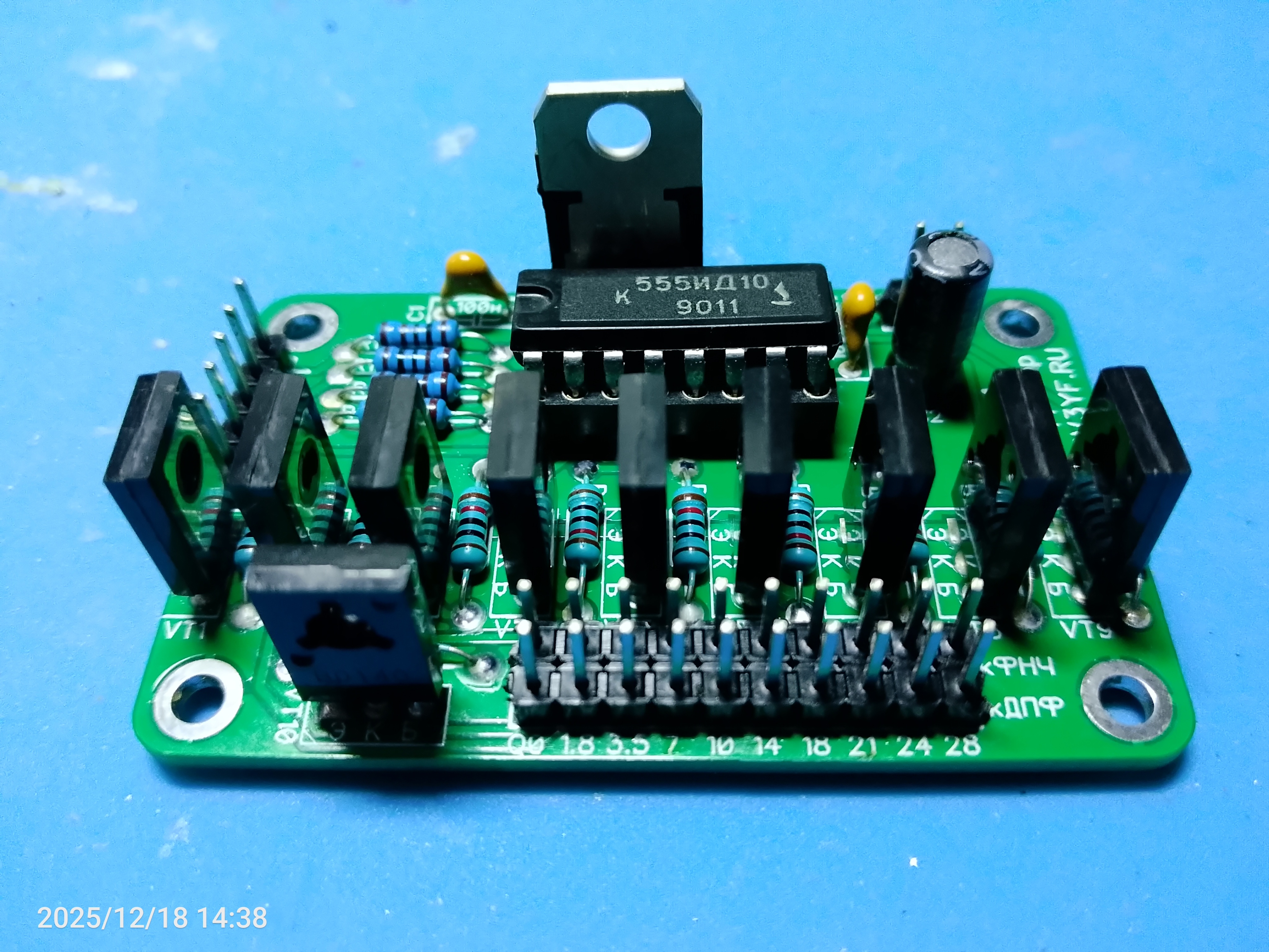 Состав набора: документация, печатная плата дешифратора, микросхема К155ИД10 (К555ИД10), транзисторы, конденсаторы и резисторы.