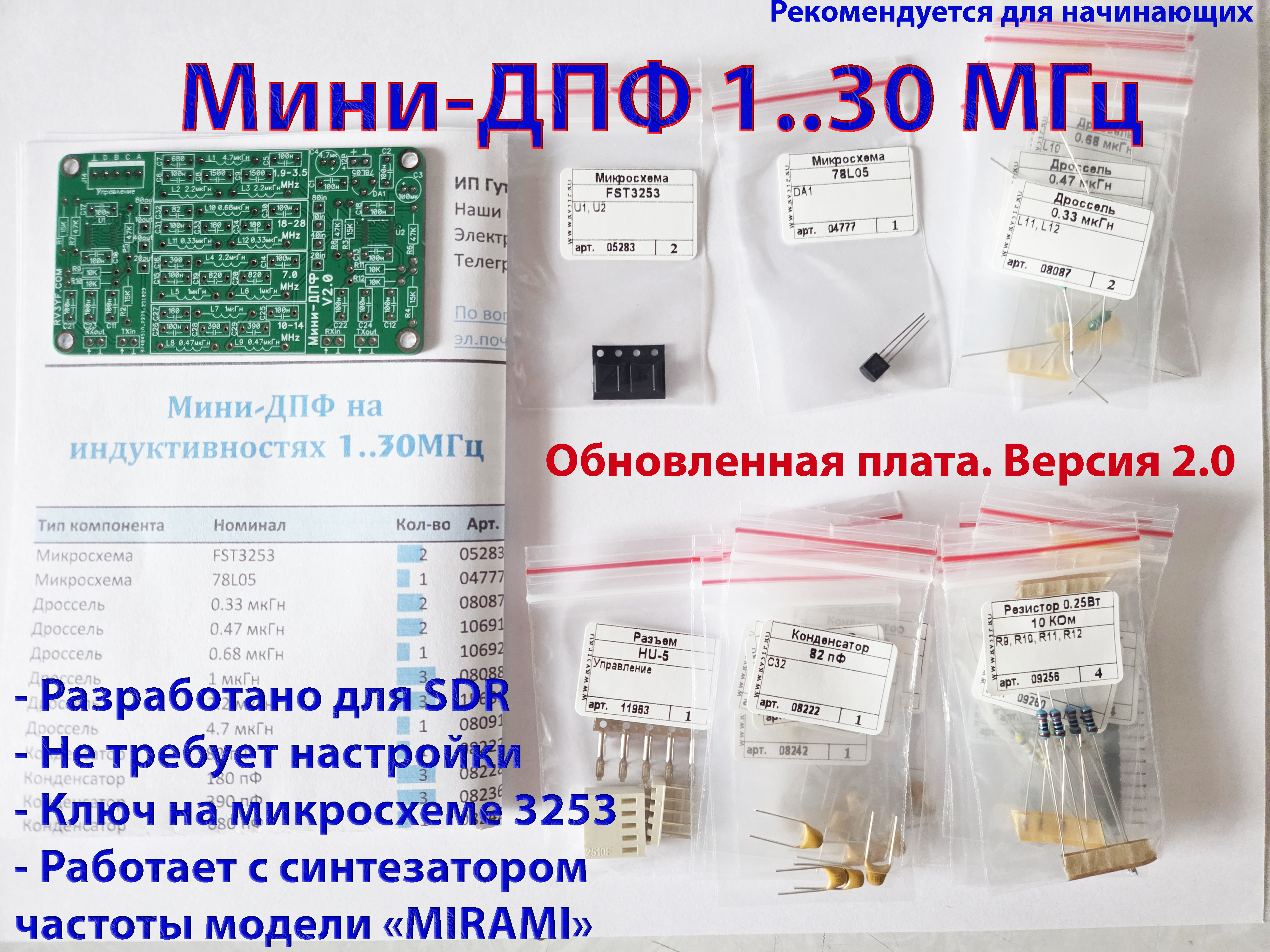 Состав набора: печатная плата, индуктивности, микросхемы 3253, конденсаторы и резисторы